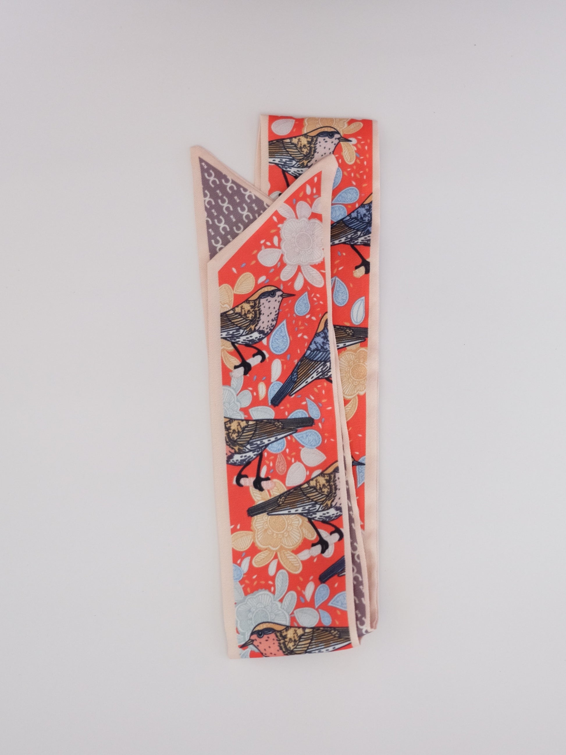 The twilly necklace is about 22" long. You can tie it to be however long/short you want!